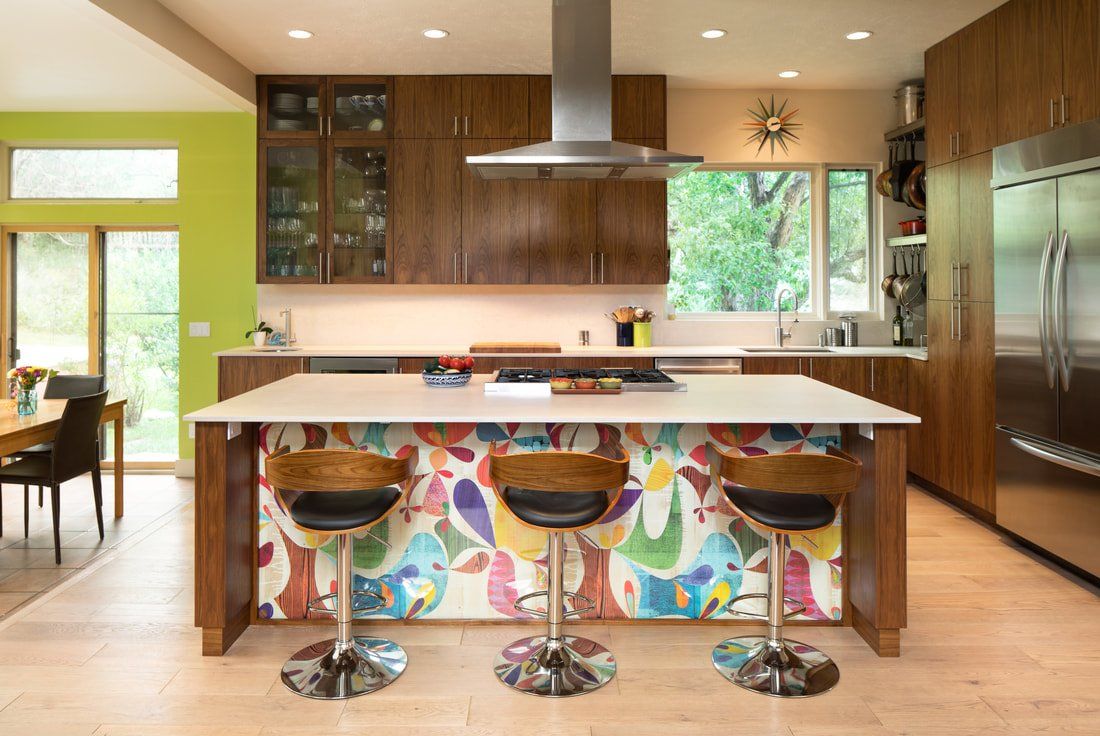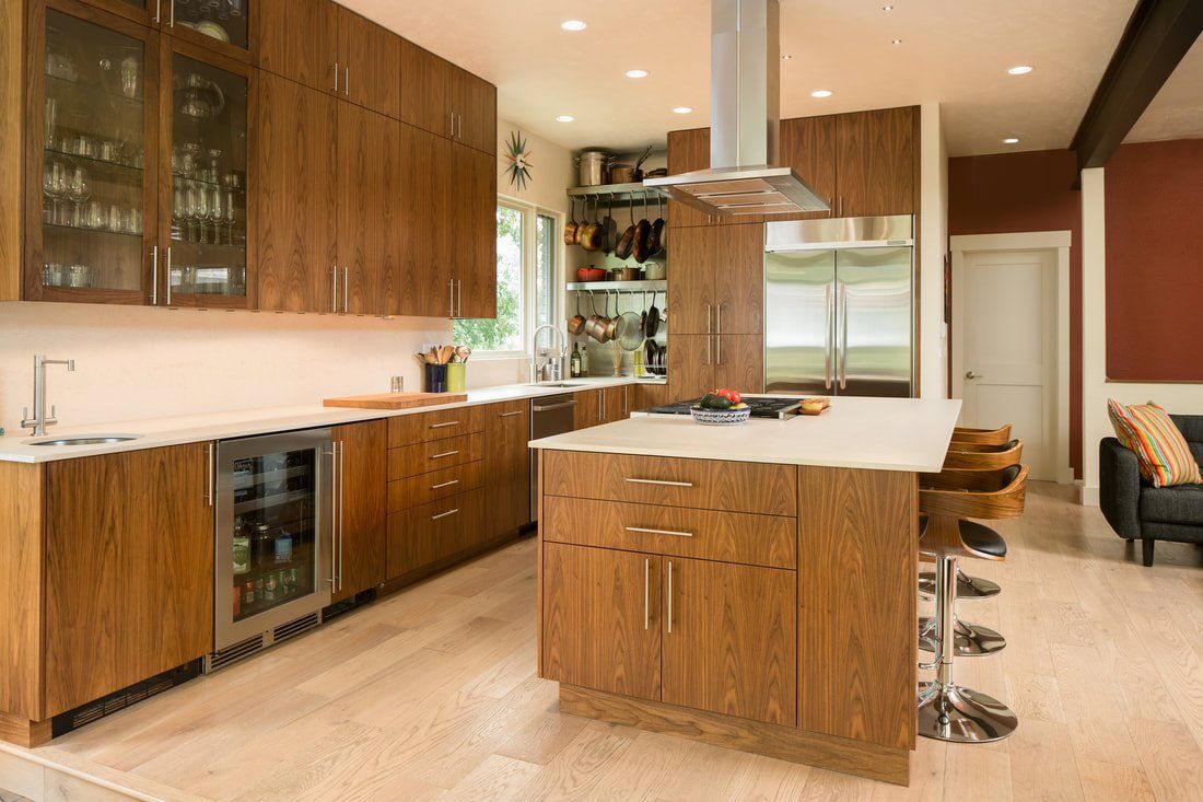 Kitchen, bath, bedrooms, grain matched elements, custom steel elements, custom art built into cabinetry.